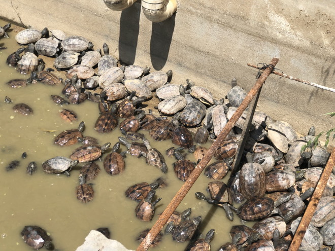 以龟鳖养殖为例,曾是金华水产特色主导品种。因甲鱼属变温动物,养殖户早期大多通过烧煤、加盖温室大棚实现控温,但相应的高密度养殖、废气、尾水等对环境破坏较大。五水共治后,产业优胜劣汰、转型升级,农户纷纷探索更生态的养殖方式。