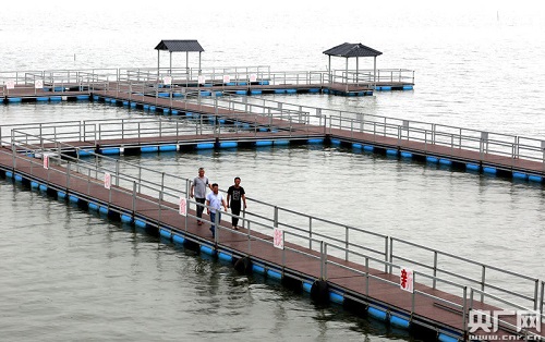 (央广网发 通讯员熊家福 摄)5月26日,江西南昌市新建区金河养殖专业合作社员工正在芰湖养殖区察看鱼苗长势。近年来,新建区铁河乡东阳村按照“党支部+合作社+贫困户”经营模式,依托8000亩的芰湖发展水产养殖业,走出一条“靠水吃水”的致富路,辐射带动当地百姓增收致富。据了解,目前新建区现有养殖水面11.3万亩,预计上半年水产品起水量4.2万吨,其中特种水产品起水量0.9万吨。