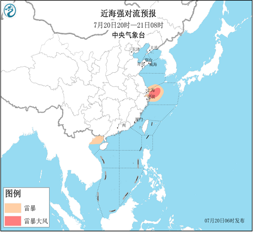 图2 近海强对流预报(20日08时至20日20时)